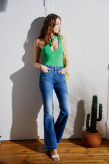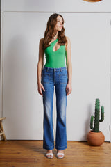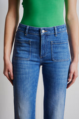 Jean flair avec ses 2 petites poches carrées à l'avant et 2 poches classiques au dos.